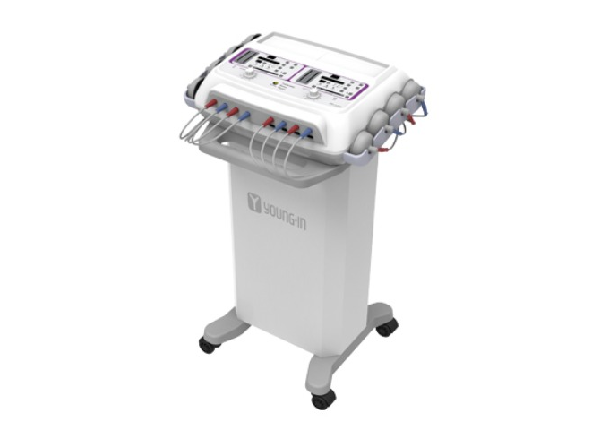 두 개의 중주파 전류를 인체에 흘려보내서 몸속에서 교차하게 함으로써 새로운 저주파를 이용하여 치료하는 장비
